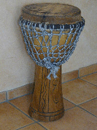 gespannt und so die Djembé höher gestimmt. Spannt niemals eine Trommel die